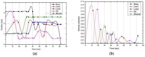 where the index “i” relating to identifies, respectively, the torque required by the motor at the base to enable rotation (), the motor at the first link (), the motor at the second link () and finally the motor for the orientation of the end-effector ().