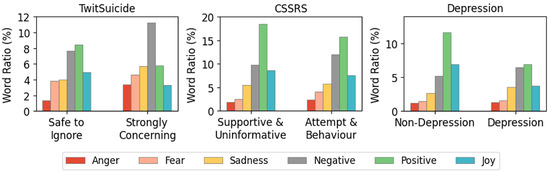 We make the code available at https://github.com/adlnlp/mm_emog. The TwitSuicide dataset is available upon request from the corresponding author. The CSSRS dataset may be downloaded from https://github.com/AmanuelF/Suicide-Risk-Assessment-using-Reddit and Depression dataset from https://github.com/swcwang/depression-detection. EmoLex and TEC lexicons may be obtained from https://saifmohammad.com/WebPages/NRC-Emotion-Lexicon.htm and https://saifmohammad.com/WebPages/lexicons.html. SenticNet is available at https://sentic.net/downloads/. All datasets and lexicons were accessed on 17 March 2024.