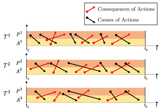 It is important to note that defining and evaluating metrics such as , , , , and the operation M, can be a complex task, as they operate on functions of time defined over continuous intervals in multi-dimensional spaces. Our solution simplifies this challenge by identifying a discrete and finite set of instants, denoted as (for an i-th SMT and a j-th instant), within each interval in both the perception and action spaces. This mechanism, which we refer to as saliency, allows each SMT to be segmented into a sequence of SMT fragments, defined as: