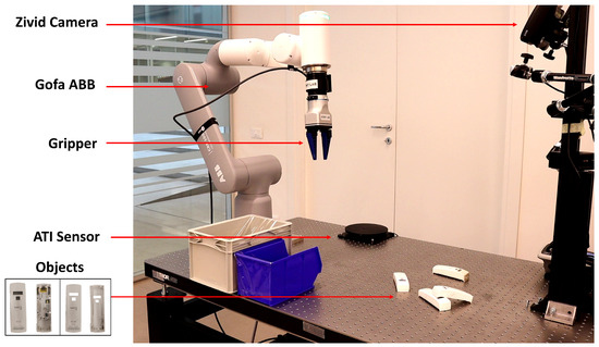 In this experiment, the robot’s task was to organize objects based on their functionality within different rooms. The setup for this experiment comprised several components, including wearable devices worn by the user, a mobile manipulator, and a perception system, as illustrated in Figure 16.