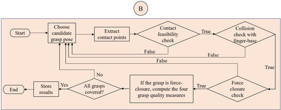 Finally, we discuss here the generalizability of the method we have presented. We list six important components of the workflow, which can be replaced with other specific methods and used in the framework we have presented—hence, they are modular. The main components are as follows: (i) grasp sampling method; (ii) grasp modeling; (iii) grasp quality measures; (iv) feasibility checks; (v) parametric finger design; and (vi) optimization method.