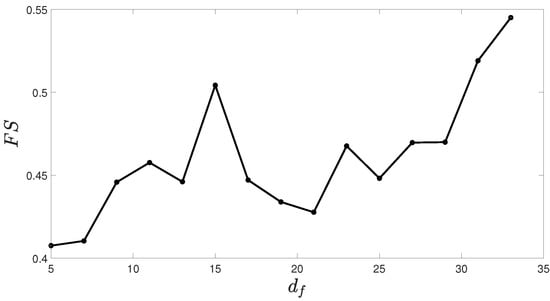 The variable d used to parameterize the linear programming problem in Section 3.2.2 (Equation (7)) is chosen as a measure of the quality of force-closure. The maximum value of d is obtained when the friction forces required to squeeze the object are zero and the normal forces are equal in magnitude. From Equation (9), we can see that the maximum value of d is . Therefore, the normalized quality of force closure is defined as follows: