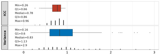 Thus, the ICC coefficients inform about a percentage of variance that can be explained using random effects (subject-to-subject variations), which implies the reliability of the modeling approach. Guidelines according to [28] can be adopted, where values