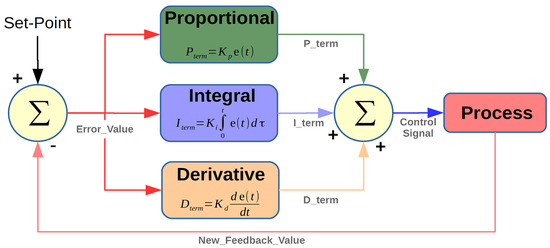 The controller output depends on three basic control behaviors, the proportional, the integral, and the derivative one. Each one of these terms is separately tuned and affects the output in a different way. The P-controller gives output, which is proportional to current error, the I-controller integrates the error over a period of time until the error value reaches zero, and the D-controller’s output depends on error rate of change with respect to time. Each of these terms is multiplied with a constant that can be determined with various methods.