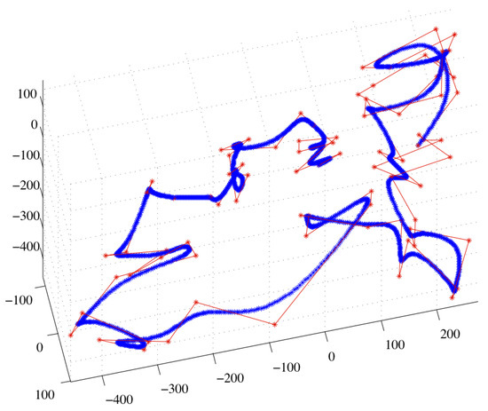 Figure 17a,b for each environment. The order of succession is from the low and outer points towards the inner and higher ones. Also, during this movement, the drone’s orientation changes in every target, aiming for the next one.