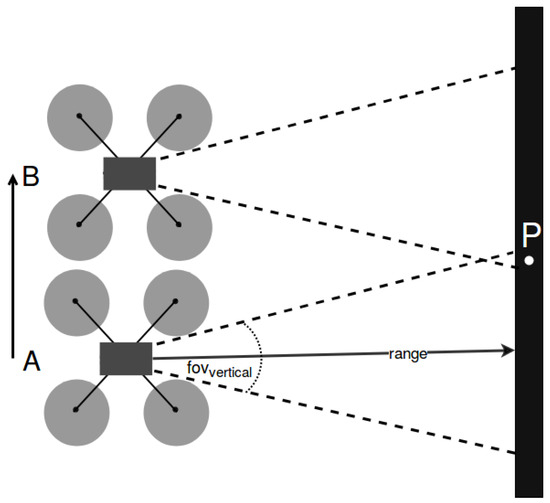 33], but the sensor parameters were modified to our needs (e.g., different ranges, FOVs, etc.). Specifically, the drone was equipped with a simulated TeraRanger Tower sensor array