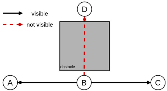 Starting from a random point N, its distance from the neighbors and is calculated. If is equal to the sampling step, this point is considered as the next one in the succession process. Otherwise, a random node is selected, and since the direct-visibility criterion is met, its distance is calculated. Then, an iterative search is performed for the next best target, until the nodes’ distance is minimum or a specific finite number of iterations has been reached.