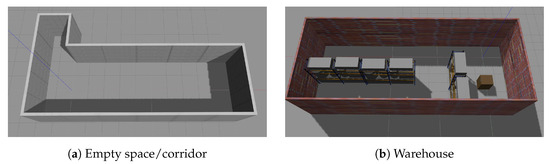 Two different environments were used to perform the experiments in the Gazebo simulator, the corridor and the warehouse, as shown in
