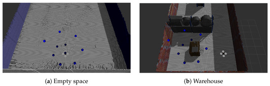 z coordinates at the same time. The environments used were an empty room and a warehouse (