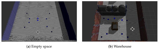 In order to define the set of waypoints that the drone had to visit, different sampling steps were used depending on the environment and the sensor type used in each case. We applied a shorter sampling step for the corridor in comparison to the warehouse environment, due to their size difference. Applying a larger step for small areas, such as the corridor, will result in a small number of waypoints that cannot ensure truly full coverage.