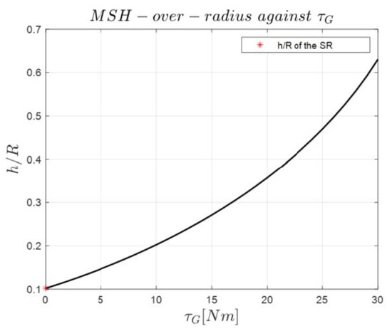 MSH-over-radius curve against Maximum Gyroscopic Torque. Total mass and barycenter position of the robot from [1].
