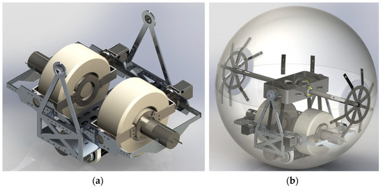 - Li, C.; Zhu, A.; Zheng, C.; Mao, H.; Arif, M.A.; Song, J.; Zhang, Y. Design and analysis of a spherical robot based on reaction wheel stabilization. In Proceedings of the 2022 19th International Conference on Ubiquitous Robots (UR), Jeju, Republic of Korea, 4–6 July 2022; Institute of Electrical and Electronics Engineers Inc.: Piscataway, NJ, USA, 2022; pp. 143–148. [Google Scholar] [CrossRef]