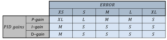 - The input is the error between the desired and actual angular velocity; the outputs are the three PID gains. Both the input and the output variables are identified through “Linguistic Variables”: “error” was used to refer to the input signal, and “P-gain”, “I-gain” and “D-gain” to the output ones.