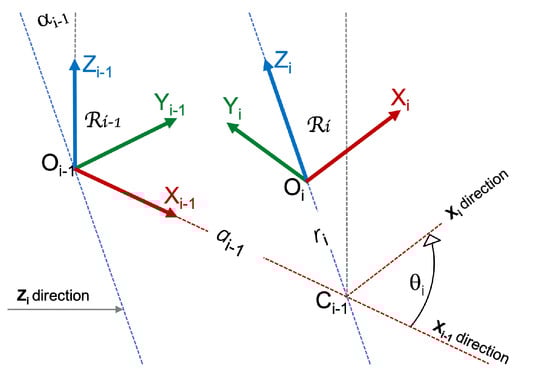 2.5.1. Denavit–Hartenberg Modified Formalism and DHm Parameters