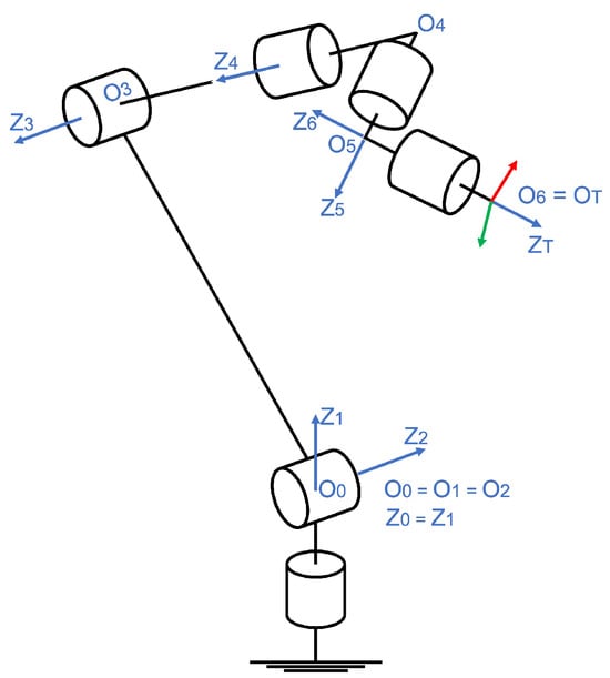 - Denavit, J.; Hartenberg, R.S. A kinematic notation for lower-pair mechanisms based on matrices. J. Appl. Mech. 1955, 22, 215–221. [Google Scholar] [CrossRef]