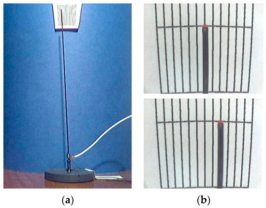 The first experimental tests were about movement, involving one actuator at a time. Using lateral photography at a distance of about 4 m, it was possible to document the movements of the end effector on a graduated scale. The possibility of positioning by a single actuator one at a time was verified on the overall range of motion. Figure 13 shows the manipulator executing a single actuator movement (a) and the movement to the position (2, 0, 131.3) as viewed by the camera with the optic axis intersecting the z-axis and pointing toward the positive direction of the y-axis (b).