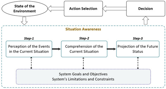As depicted in Figure 1, at the first level of SA (perception), the attributes and dynamics of critical environmental factors will be perceived. This process will be followed by the second level where the perceived information will be comprehended through the synthesis of disjointed critical factors and understanding what those factors mean in relation to the mission’s tasks. Eventually, the third level of SA involves projecting the next status of the entities in the environment that enables the system to act and respond to the raised situation promptly. The vehicle-related SA functions are classified as follows.