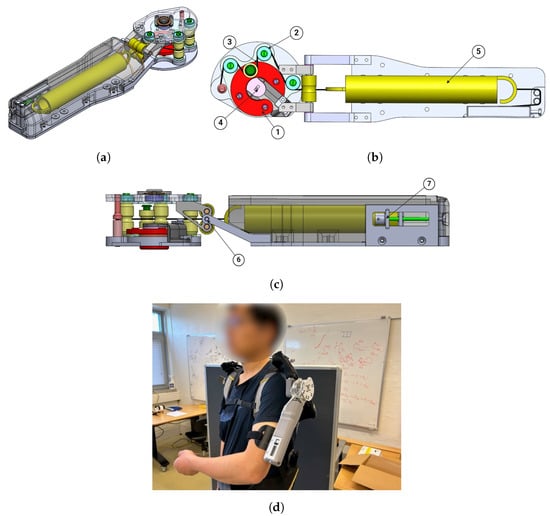 - Holl, E. New optimized mechanism for linking a hydraulic actuator to the elbow joint of an upper arm exoskeleton. J. Test. Eval. 2022, 50, 2400–2409. [Google Scholar] [CrossRef]