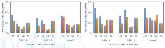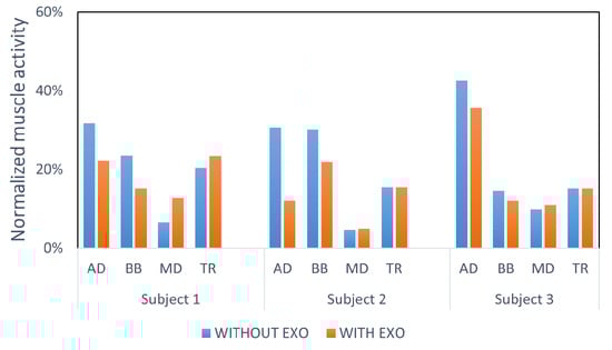 - Musso, M.; Oliveira, A.S.; Bai, S. Influence of an upper limb exoskeleton on muscle activity during various construction and manufacturing tasks. Appl. Ergon. 2024, 114, 104158. [Google Scholar] [CrossRef]