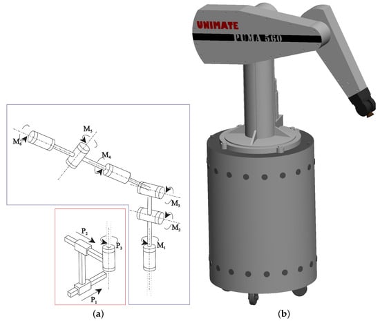 - Kim, H.; Streit, D. Configuration dependent stiffness of the PUMA 560 manipulator: Analytical and experimental results. Mech. Mach. Theory 1995, 30, 1269–1277. [Google Scholar] [CrossRef]