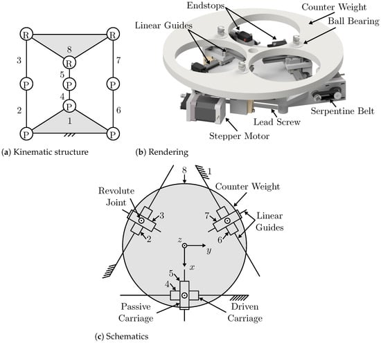 - Kerle, H.; Corves, B.; Hüsing, M. Getriebetechnik: Grundlagen, Entwicklung und Anwendung ungleichmäßig übersetzender Getriebe, 5., überarbeitete und erweiterte auflage ed.; Lehrbuch, Springer Vieweg: Wiesbaden, Germany, 2015. [Google Scholar]