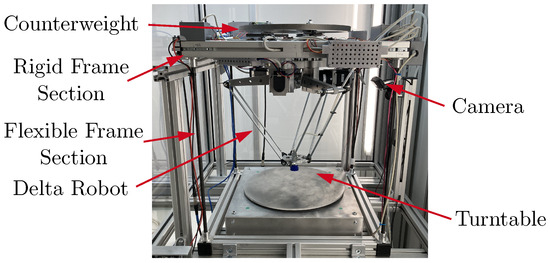 - Mirz, C.; Hüsing, M.; Takeda, Y.; Corves, B. Low Cost Delta Robot for the Experimental Validation of Frame Vibration Reduction Methods. In ROMANSY 24—Robot Design, Dynamics and Control; CISM International Centre for Mechanical Sciences; Springer International Publishing: Cham, Switzerland, 2022; Volume 606, pp. 332–339. [Google Scholar] [CrossRef]