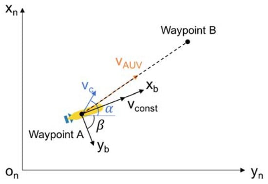 where is the designed constant AUV velocity vector, is the velocity vector of the ocean current, and is the rotation matrix.
