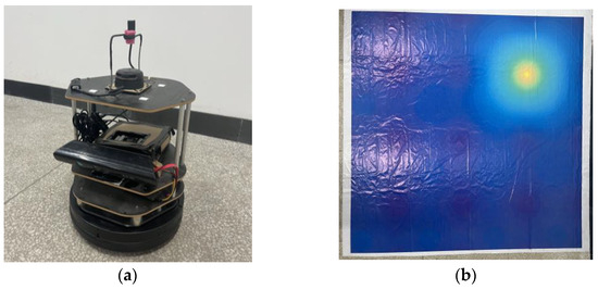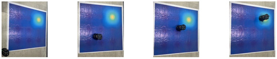 This section presents the experiment used to demonstrate the feasibility of using the adaptive path planning algorithm for autonomous robot navigation to locate the global extreme in a static environment. In the experiment, a TurtleBot 2 robot with Kobuki base, as shown in Figure 11, was deployed to locate the extreme point on a 3 m × 3 m map. The map was printed with the same contour plot of the Ackley environment feature as presented in the numerical simulation in Section 4.4. The robot was equipped with a Microsoft Kinect V1 Xbox 360 (Redmond, WA, USA), which relayed real-time visual data to a remote computer. This computer, running Ubuntu 14.04 and equipped with an AMD Ryzen 7 5800H processor (Surry Hills, NSW, Australia), 16 GB of RAM, and an NVIDIA RTX 3060 GPU, processed the data using the developed DDQN algorithm implemented in PyTorch 1.11.0. The TurtleBot 2 robot and the remote computer were configured to set up communications on the same network. The IP address was used to established the ROS environment variable for communication.
