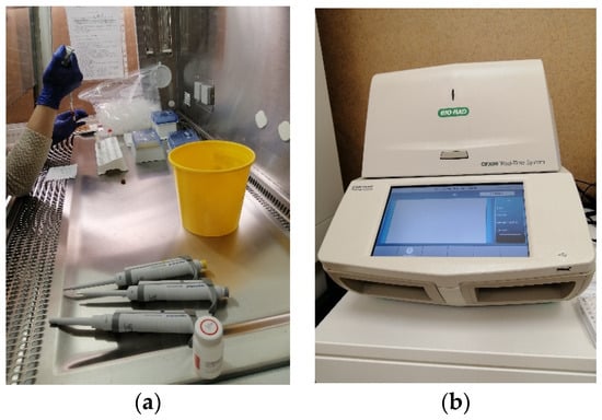 Current manual samples processing (a) and polymerase chain reaction (PCR) thermocycler (b).