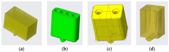 Three-dimensional models of support containers: (a) sample support, (b) primer support, (c) pipette support, and (d) tip support.
