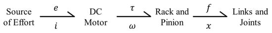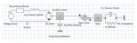 In this section, a conventional model of the LLRE is developed using the laws of physics to deduce the equations for the system. The mechatronic system comprises a motor with gears, rack and pinion, and mass–spring–damper load as shown in Figure 5.