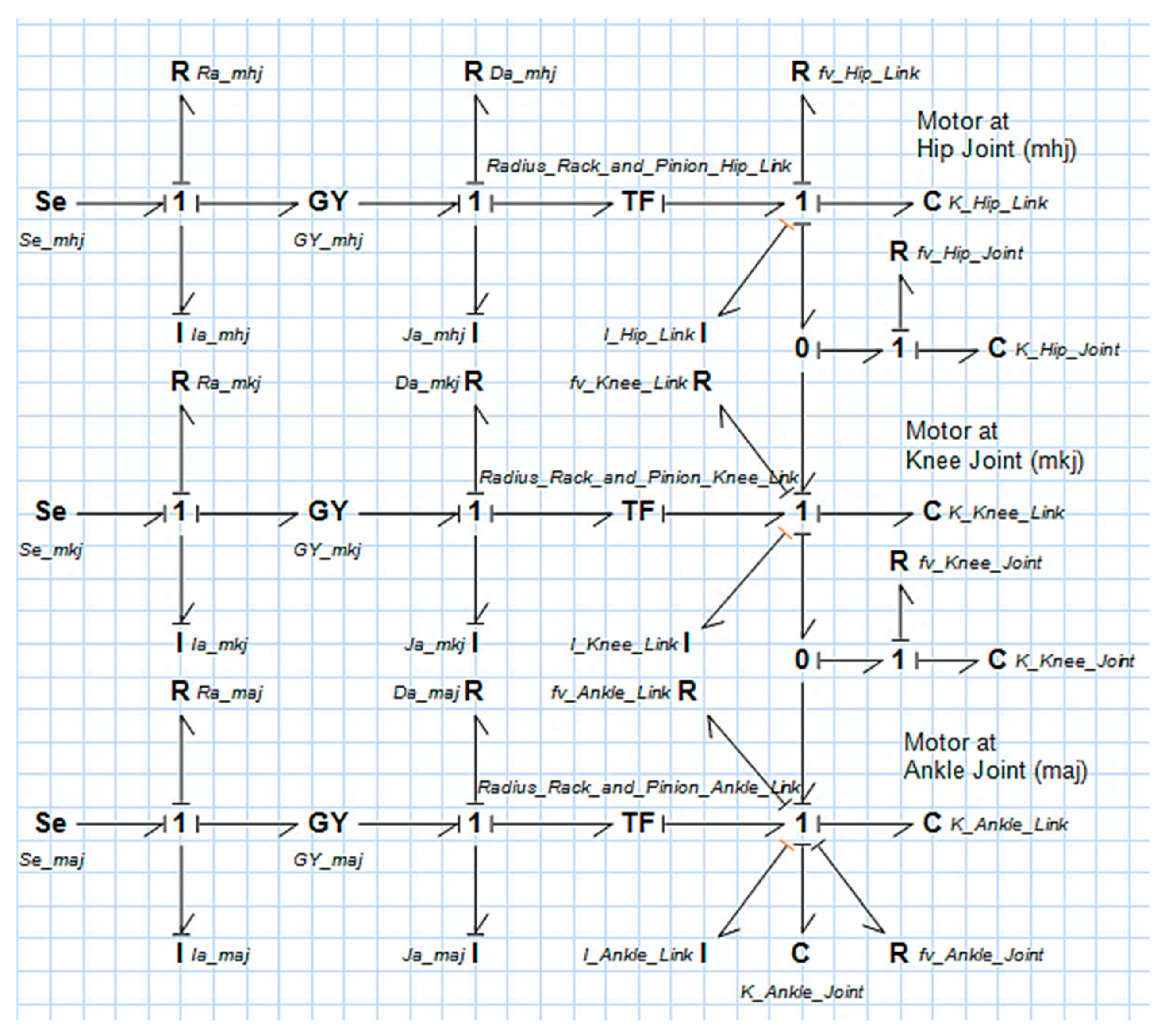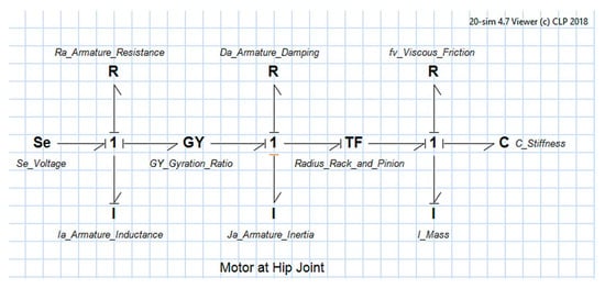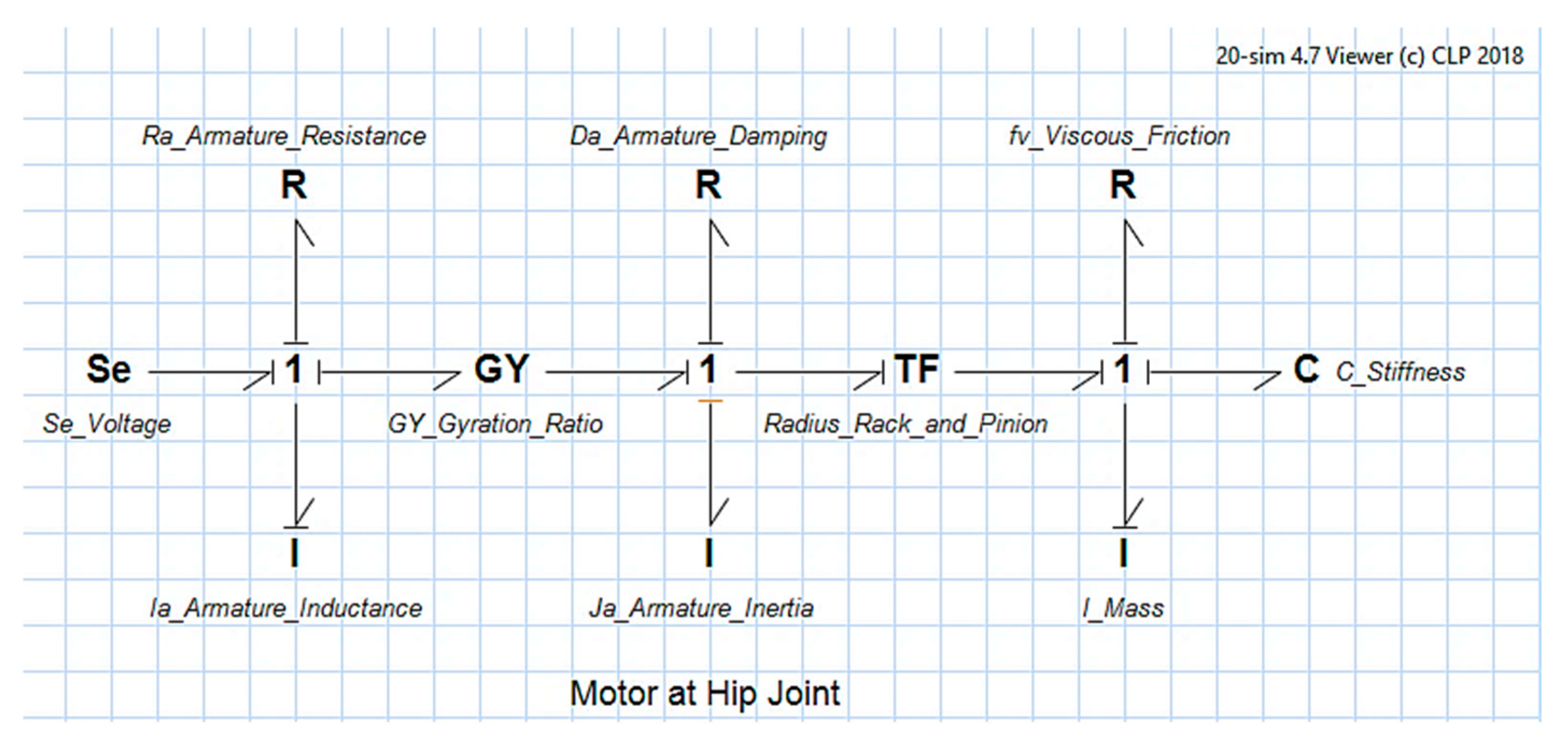 - Barjuei, E.S.; Toxiri, S.; Medrano-Cerda, G.A.; Caldwell, D.G.; Ortiz, J. Bond Graph Modeling of an Exoskeleton Actuator. In Proceedings of the 2018 10th Computer Science and Electronic Engineering Conference (CEEC), Colchester, UK, 19–21 September 2018; pp. 101–106. [Google Scholar] [CrossRef]