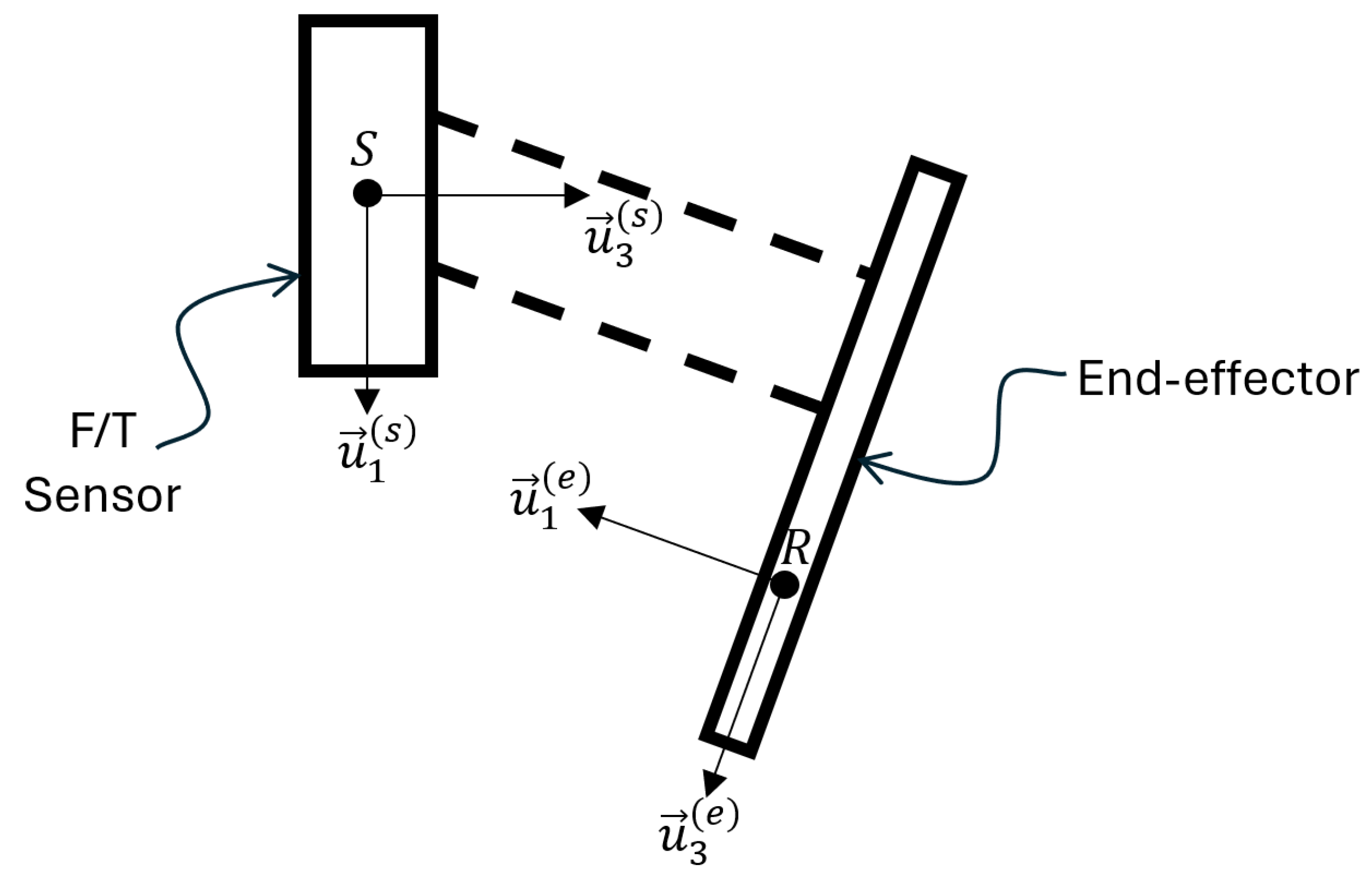 Figure 1 depicts these vectors and frames, and the dashed lines indicate a rigid connection between the force/torque sensor and the end-effector.