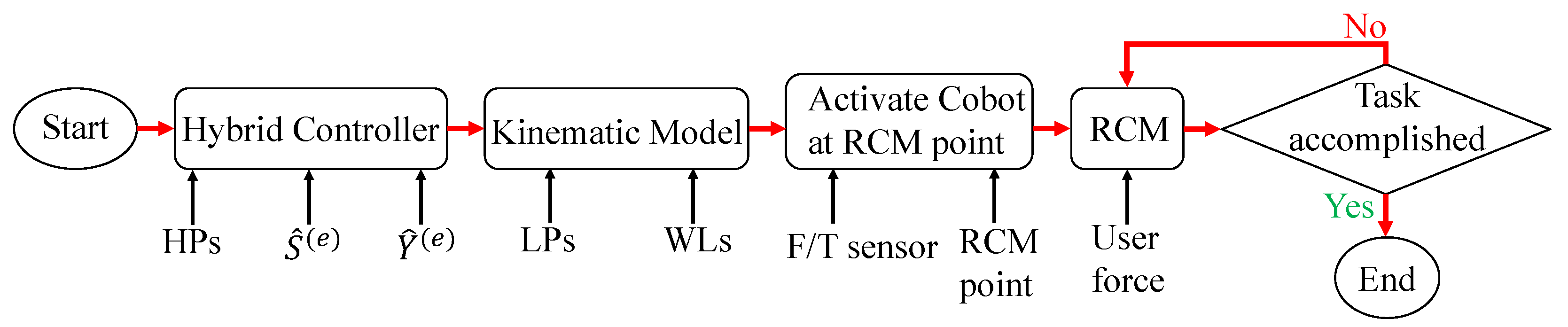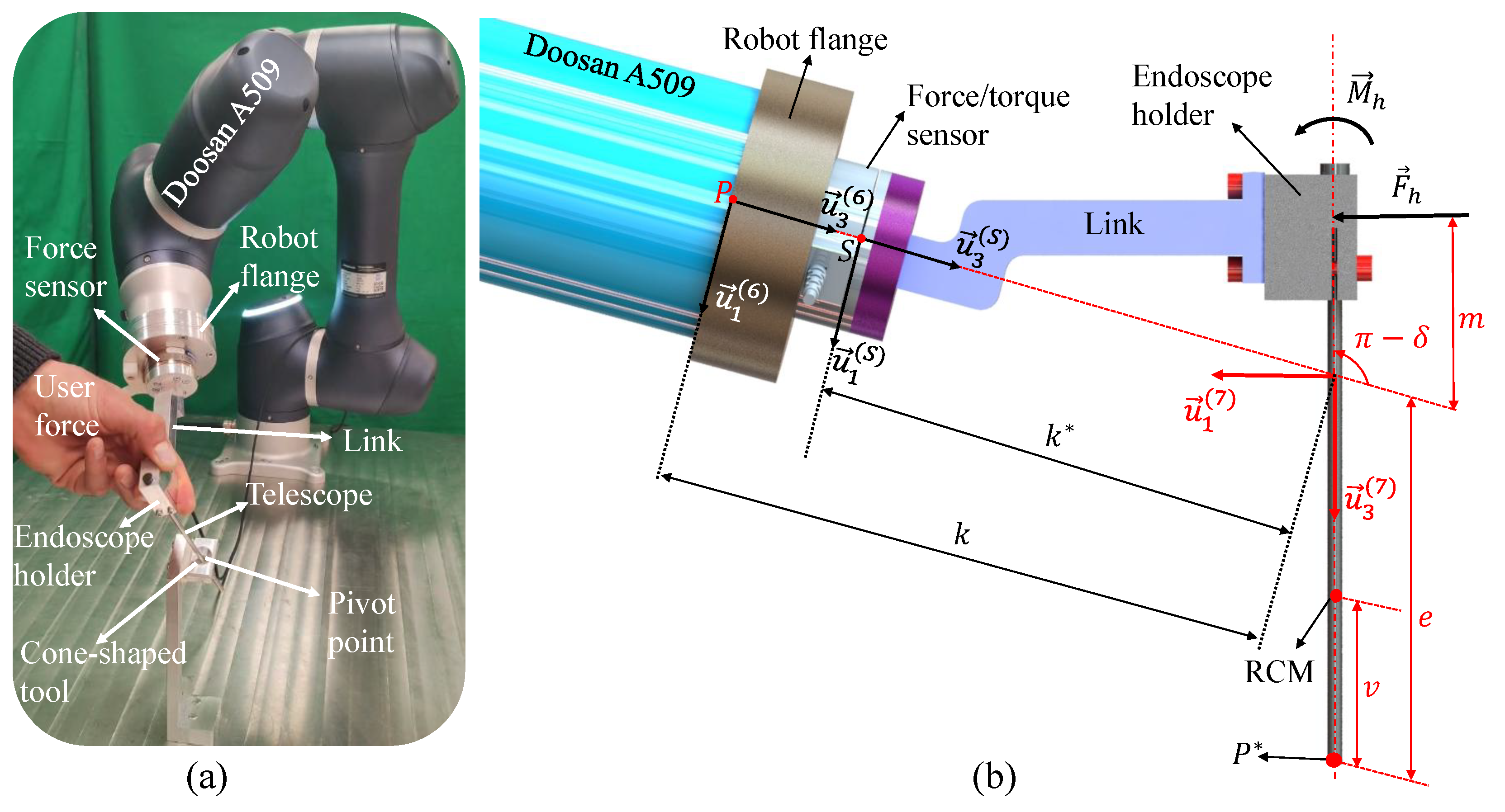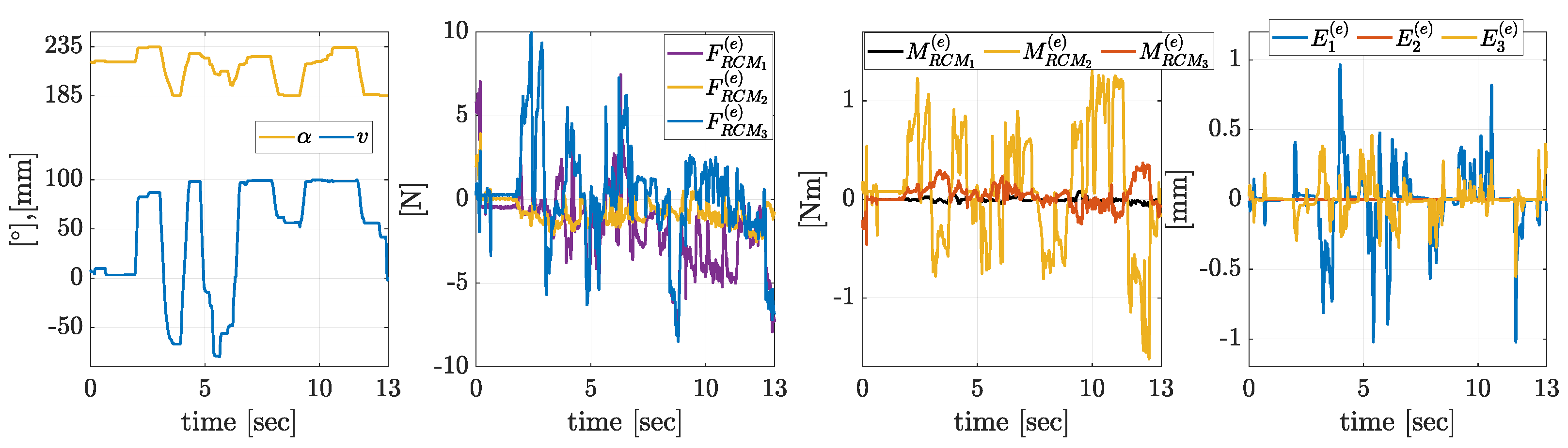 14], a hybrid admittance controller is developed by keeping the robot at the RCM point through position control while providing compliance at the tool (i.e., the tip point of the endoscope). However, similar to the previous study, also in this study, the mass and inertia properties of the robot have to be precisely known due to the torque-control strategy.
