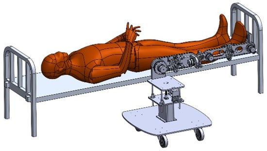 In addition, the system contributes to exoskeleton design for bedside and early-stage rehabilitation, enabled by a vertically supported, mobile frame that can be aligned with a patient in a bed or chair. Unlike many existing devices restricted to treadmill or overground walking, our exoskeleton enables joint mobilization without full body-weight support, which is critical for patients in acute recovery. The design also supports both passive and active-assist therapy modes, extending its application from intensive care units to home-based rehabilitation environments. Finally, quick-release joints and simplified alignment mechanisms enhance usability, allowing setup and operation without the need for specialized clinical staff.