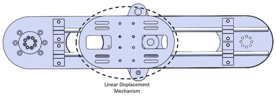 The knee flexion/extension mechanism enables sagittal plane motion of the leg, replicating the primary movement of the human knee joint. The actuation is performed using a brushless DC motor mounted on the femoral link, driving the tibial segment via a rigid rotary connection. The configuration is similar to the hip F/E unit and includes a pantograph linkage to allow structural adaptability. To more accurately model human knee biomechanics, the design integrates a passive linear displacement mechanism. During natural knee flexion, the joint’s instantaneous center of rotation shifts, producing a combined arc-and-slide movement. To capture this, the tibial section includes a sliding plate that translates along two parallel steel guide rods. This plate is mounted on linear bearings, allowing it to move freely in response to the angular motion initiated by the actuator. As the knee rotates, the follower plate glides smoothly along the rods, introducing a controlled linear shift that mimics the femoral rollback seen in human gait. The mechanism is fully mechanical. So, no secondary actuation is required which helps reduce misalignment-induced strain. This hybrid approach of combining rotary actuation with guided linear translation improves comfort, joint alignment, and rehabilitation effectiveness. Figure 8 and Figure 9 present the design and configuration of the knee flexion–extension mechanism, highlighting joint alignment and actuation linkage.