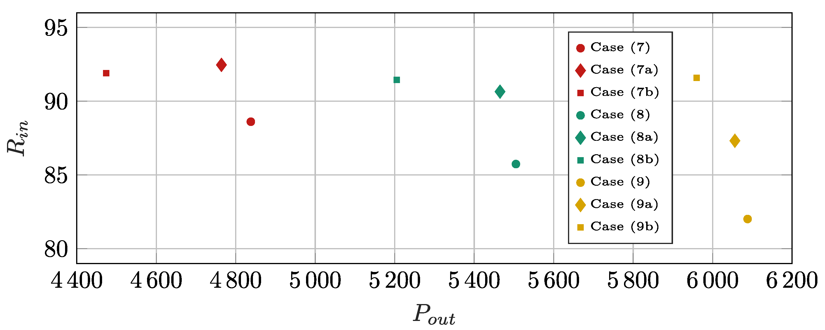 Figure 10b; it can be seen that case (7a) achieves zero losses in steady-state conditions, while case (8a) still displays some minor losses. Considering variants of case (9), it can be seen that the upstream productivity is still unacceptable in case (9a) and more appropriate in case (9b).