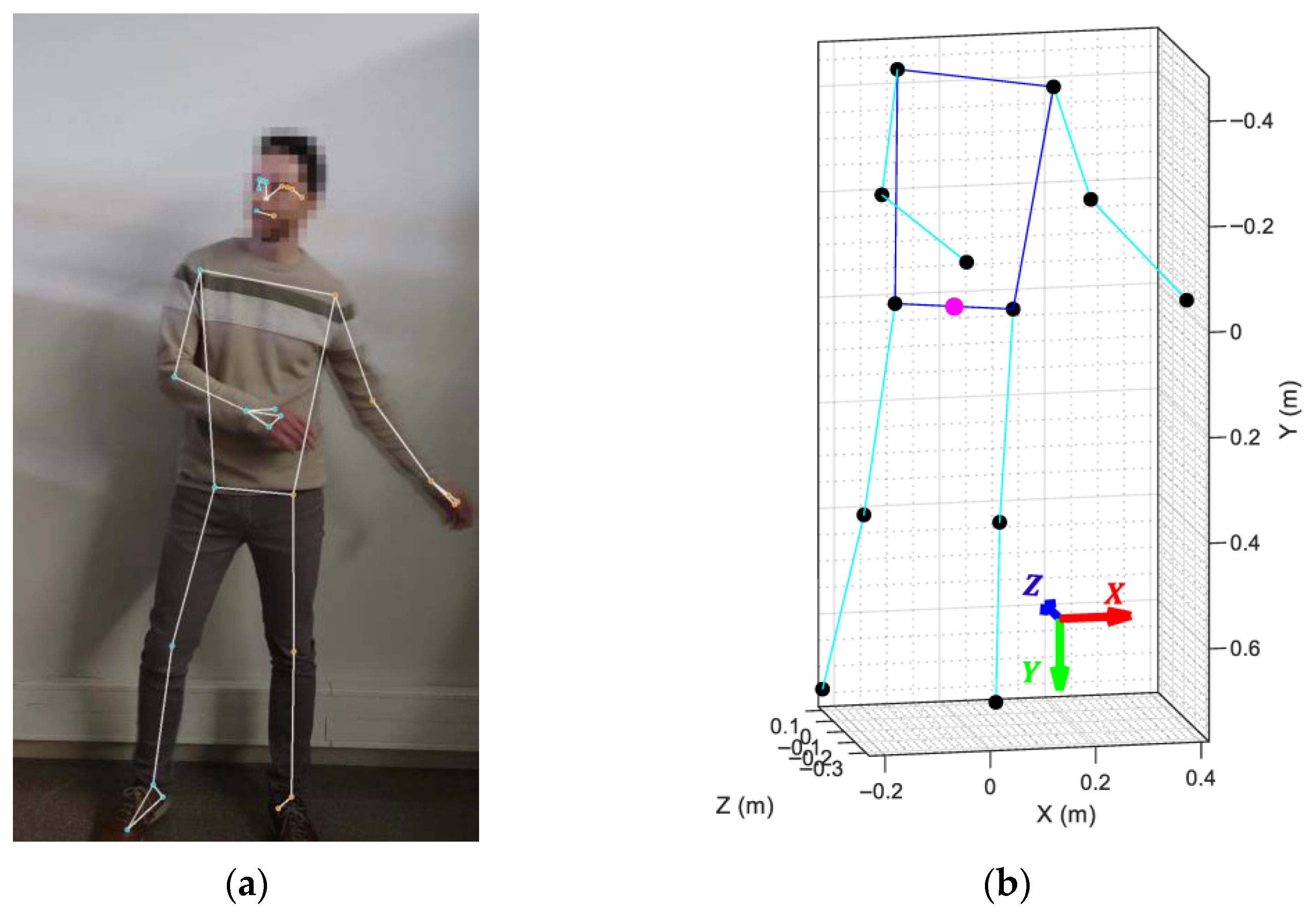- Bazarevsky, V.; Grishchenko, I.; Raveendran, K.; Zhu, T.; Zhang, F.; Grundmann, M. BlazePose: On-Device Real-Time Body Pose Tracking. arXiv 2020, arXiv:2006.10204. [Google Scholar]