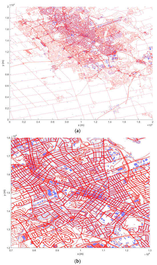 Assumptions regarding the target motion include the following: (i) The missing person is assumed to be in a known urban environment with a given map. (ii) The target would be traveling according to a mix of possible motion types, including occasional backtracking—starting at t = 0, at or near their last known position (LKP). (iii) As time progresses, the target’s motion is driven by both the road and pathway network and the presence of obstacles. (iv) When encountering ‘soft’ obstacles (different types of buildings), the target may enter these and spend some random amount of time in them, becoming undetectable to searchers. Entry probabilities need to be incorporated into the motion model to accurately capture realistic city-search scenarios. (v) A priority system is assumed for the targets, where more vulnerable individuals (such as children) receive higher search priority.