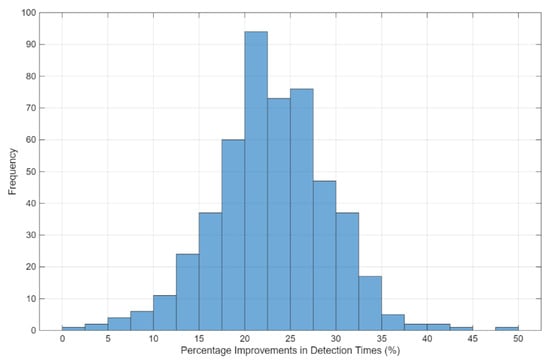 For comparison, the simulations were re-run for targets with different priorities: Targets 1, 4, and 6 had higher priority levels of 0.8, 0.65, and 0.7, respectively, while Targets 2, 3, and 5 remained at a priority of 0.5. After four hours of searching, a success rate of 99% was achieved for Target 1, 91% for Target 2, 92% for Target 3, 93% for Target 4, 90% for Target 5, and 96% for Target 6. Table A2 shows the mean detection times for the equal priority case, as well as for the non-equal priority case.