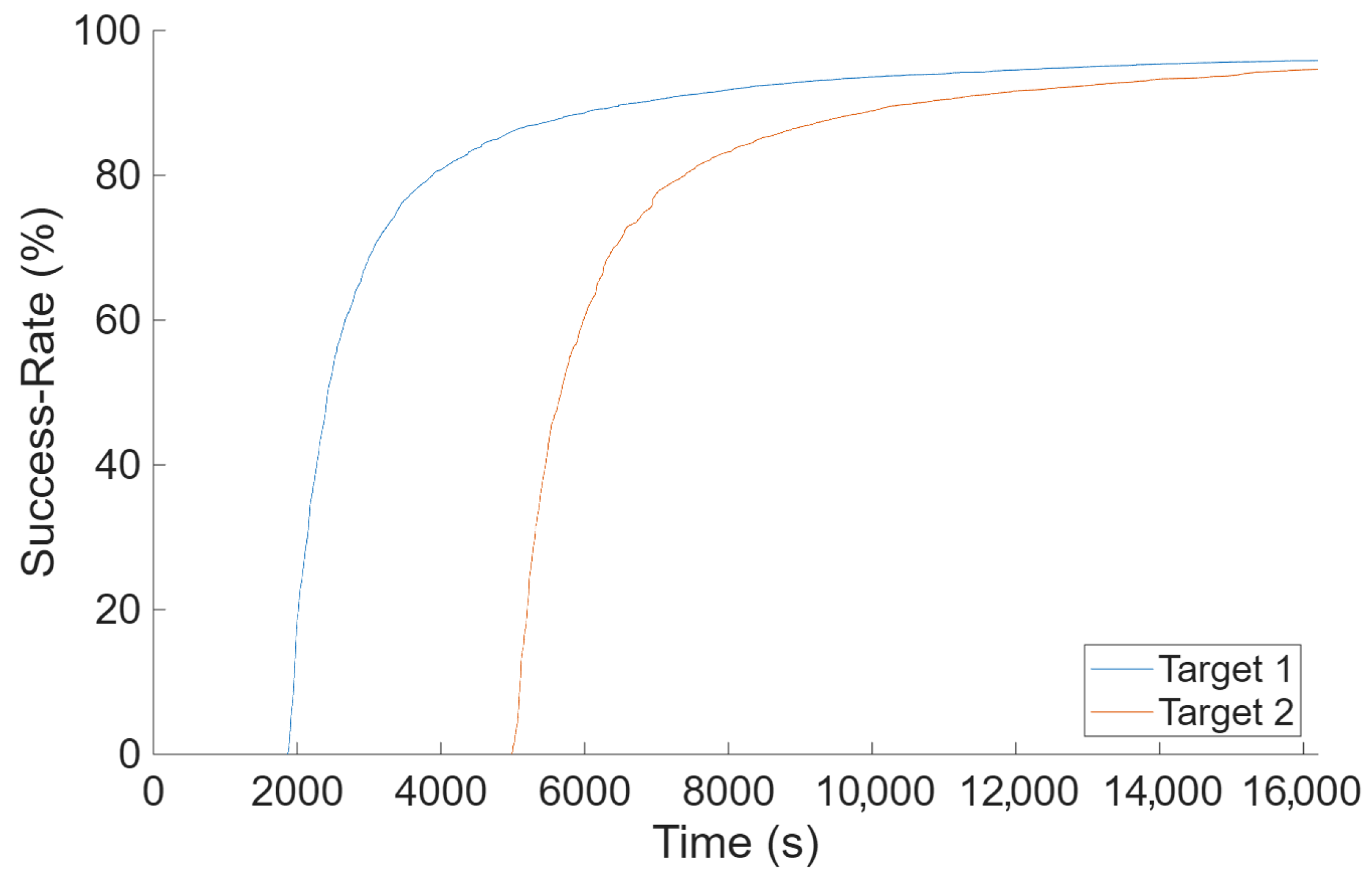 - At t = 7980 s, Target 1 was found. All robots returned to their stations.