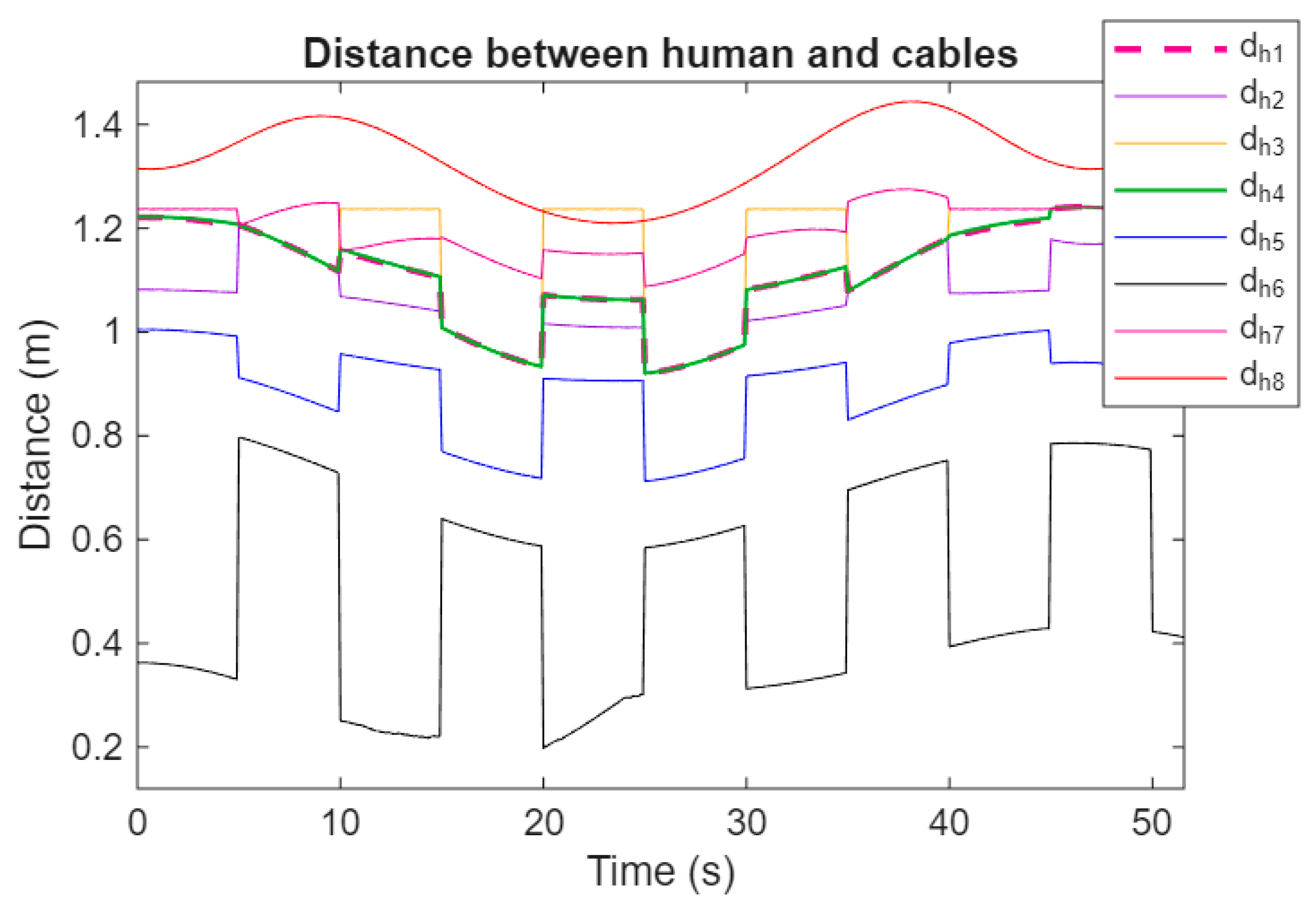 - Khoshbin, E.; Youssef, K.; Meziane, R.; Otis, M.J.-D. Reconfigurable fully constrained cable-driven parallel mechanism for avoiding collision between cables with human. Robotica 2022, 40, 4405–4430. [Google Scholar] [CrossRef]