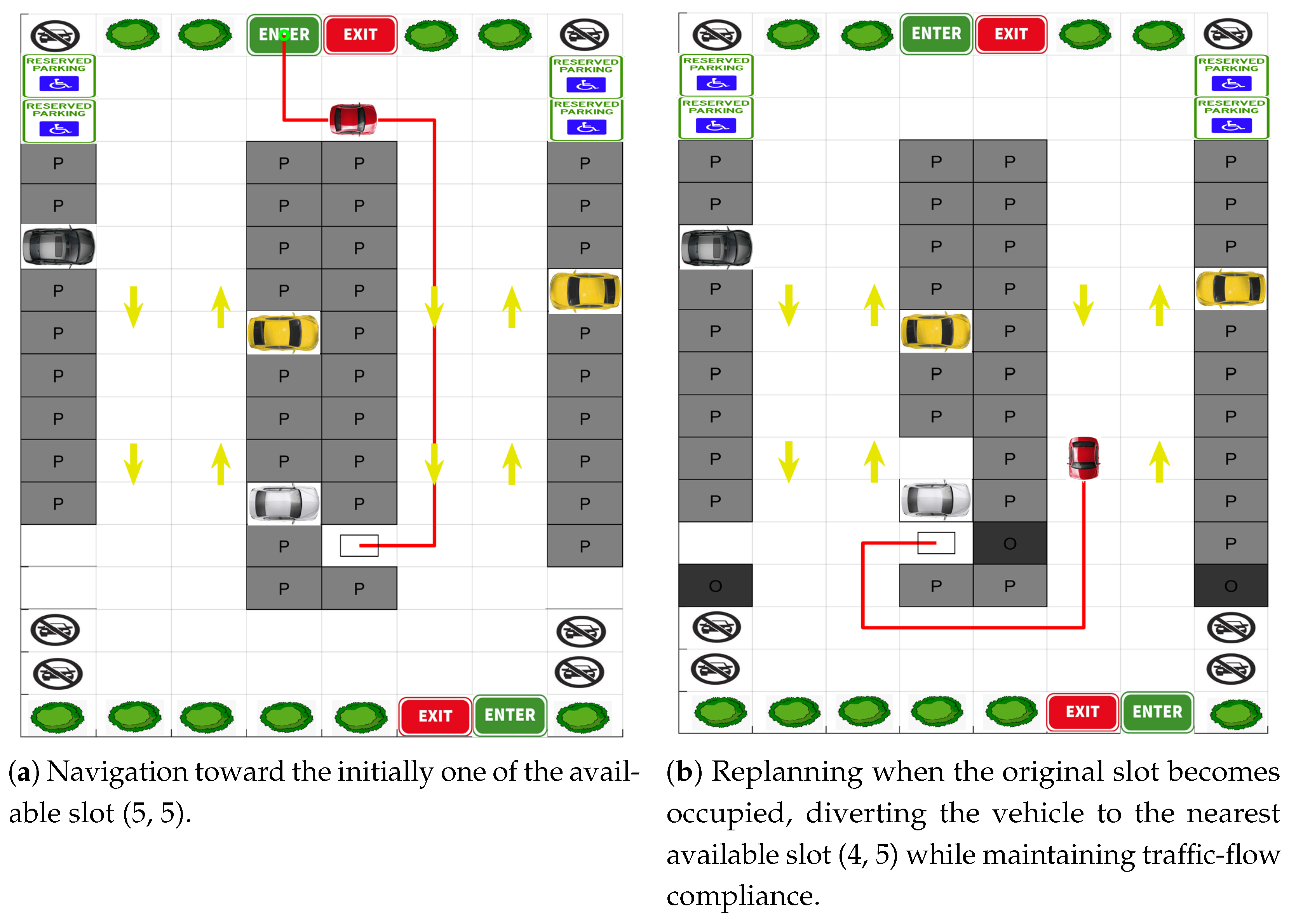 5.4. Experiment 4: Smart Parking with Dynamic Goal Reassignment