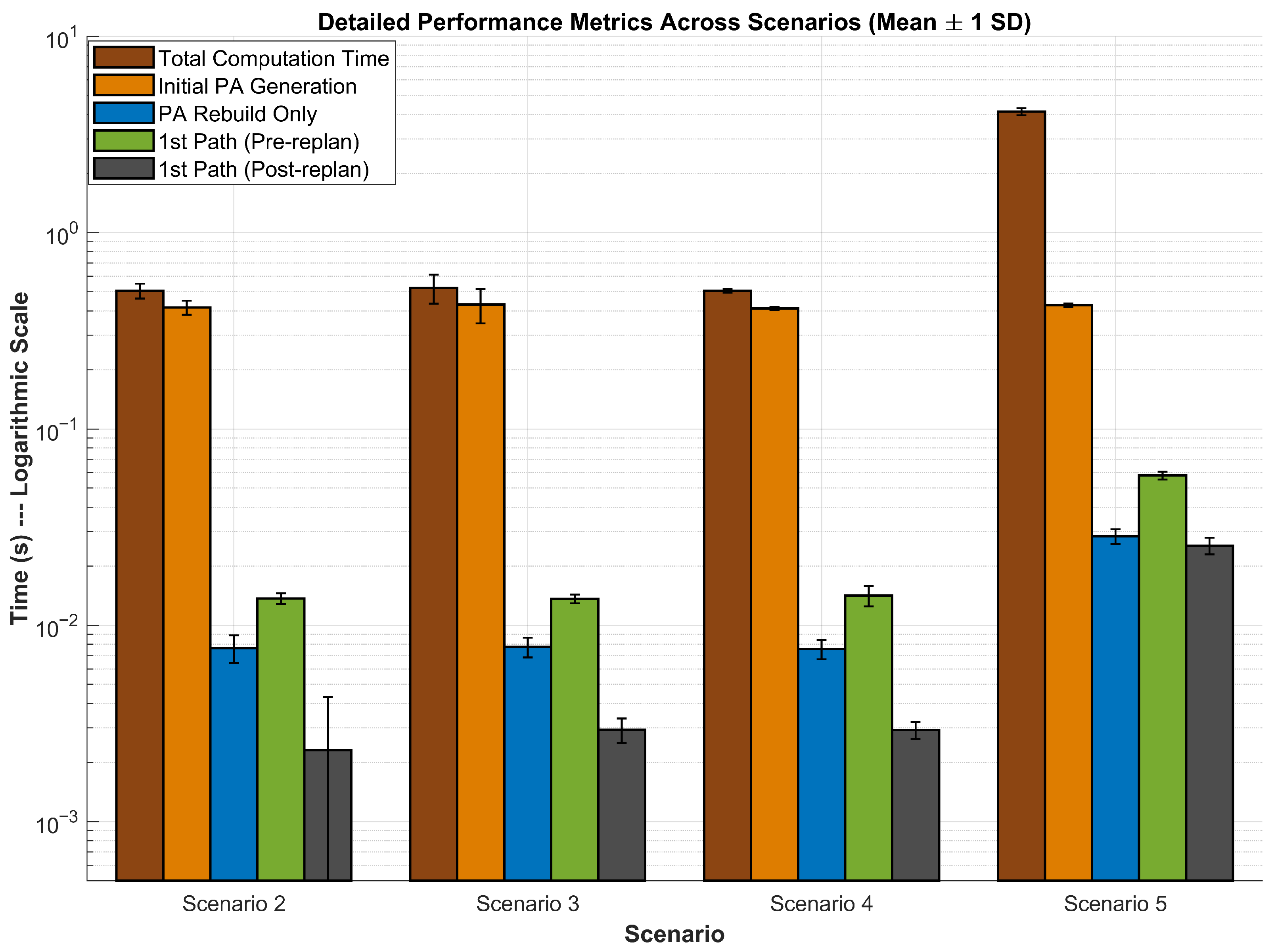 5.7. Experiment 6: Comparative Benchmark of Replanning Computation