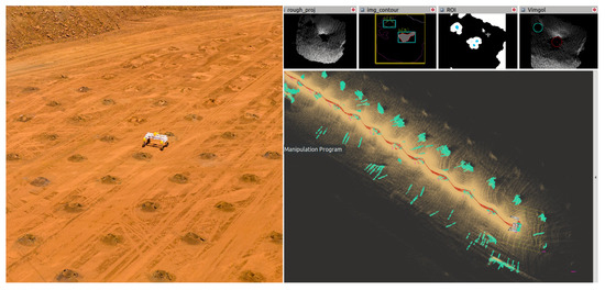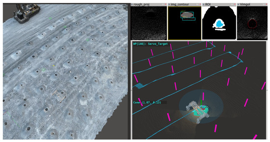 There are many approaches to solving an automation task. From a robot-theoretic point of view, the common practice [6,7,8] would be to first explore the environment to generate a map, and then carefully plan efficient paths to navigate between objects (in this case, blastholes within a blasthole pattern). Although this strategy offers the potential for full autonomy in traversing diverse environments, developing such an all-purpose solution for mine site inspection would incur high cost and produce unnecessary features. Due to the transient nature of the blast sites—with short times between drilling and blasting—and the destructive nature of the operation [9], mapping is of negligible value and the robot’s focus should be on hole inspection.