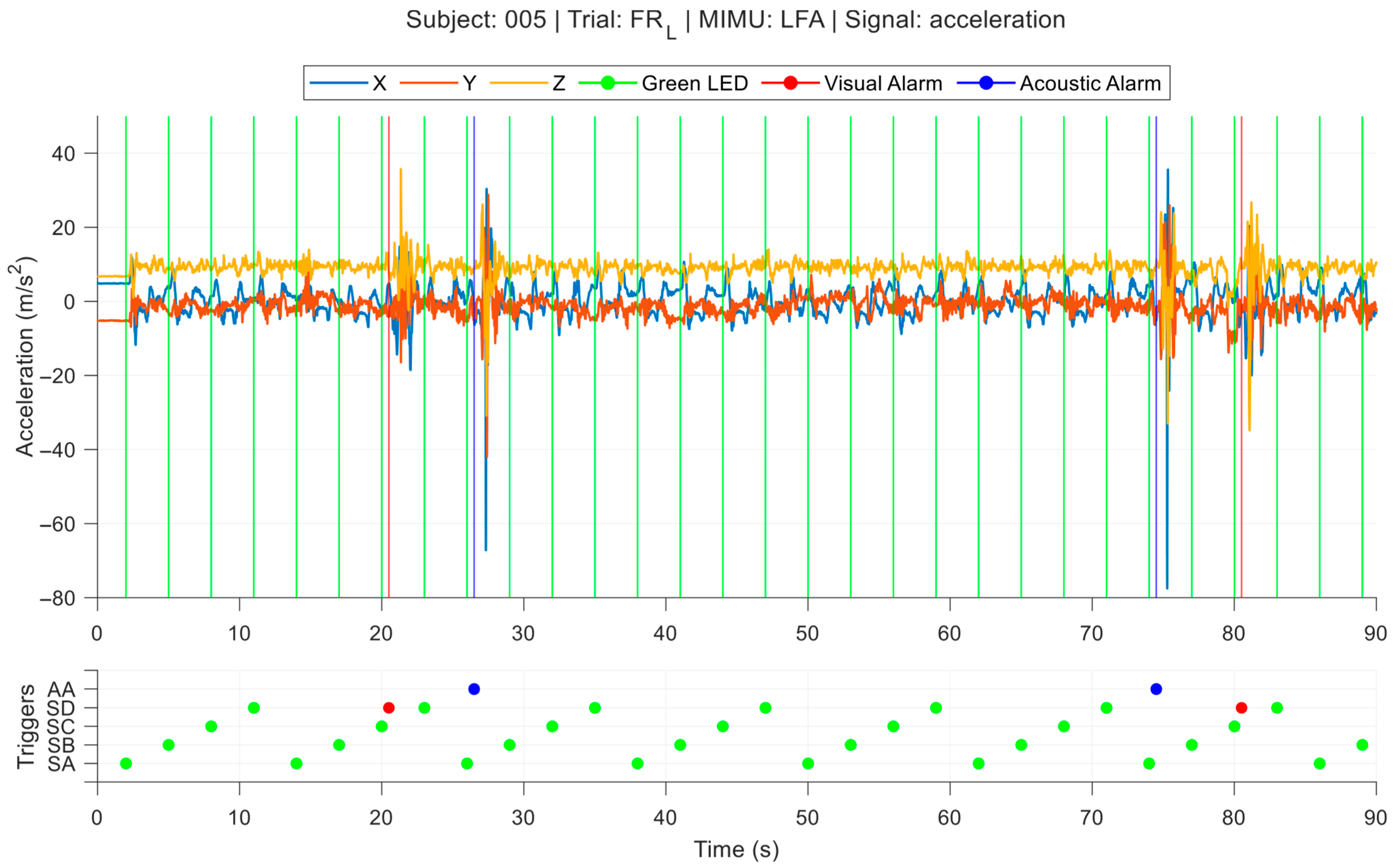 - Time (s) of the acquisition with a sampling frequency of 200 Hz;