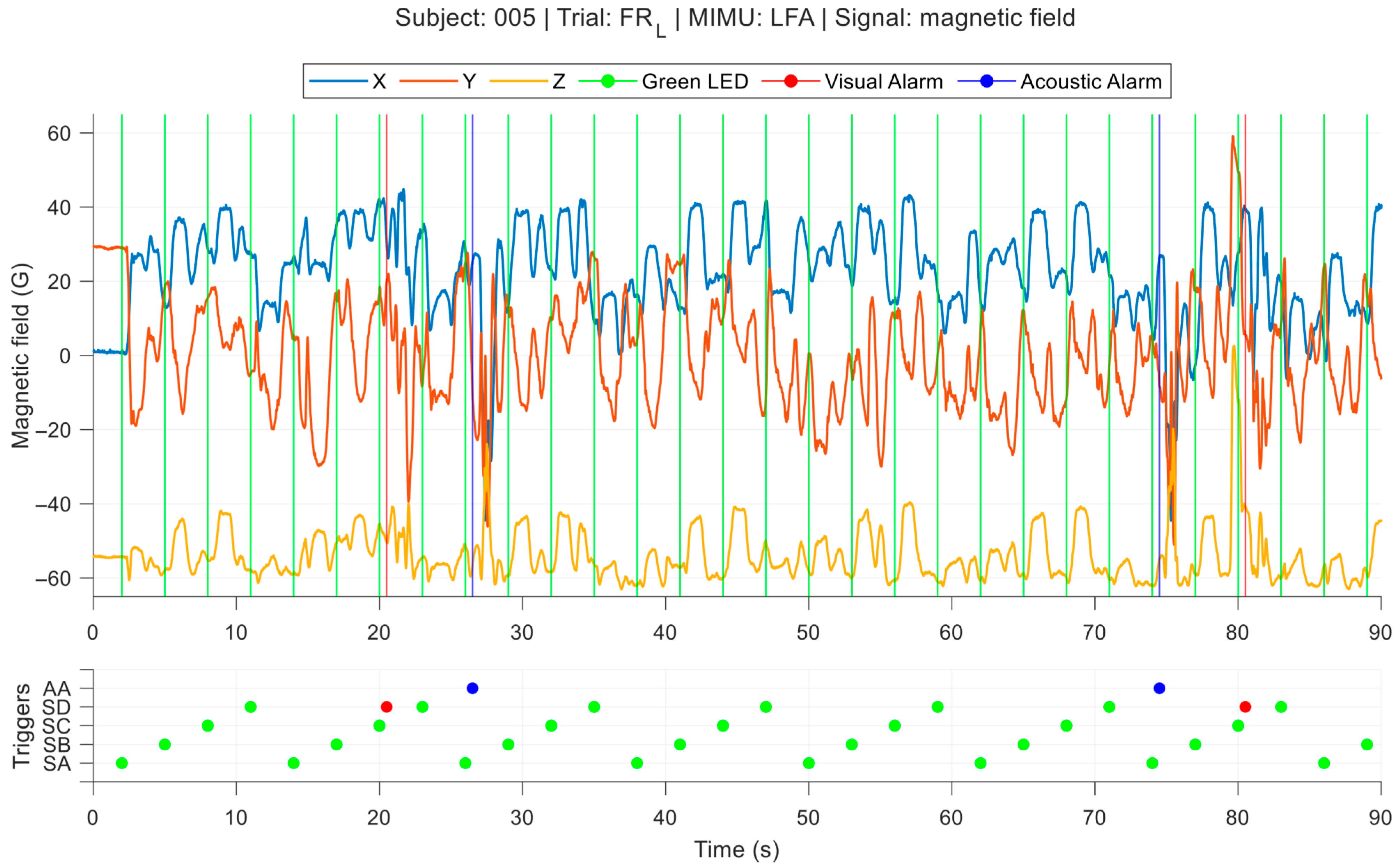 - Data collected from all MIMUs related to the three different trials (subXXX_FR_R_MIMU.csv, subXXX_FR_L_MIMU.csv, subXXX_LA_L_MIMU.csv). Each .csv file contains: