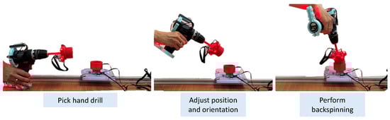 The experimental procedure only dictates that the human participant picks up the drill and adjusts its orientation and position, while applying the backspinning technique to identify a reliable haptic cue that indicates the appropriate time instant to initiate thread engagement without jamming (see Figure 2).
