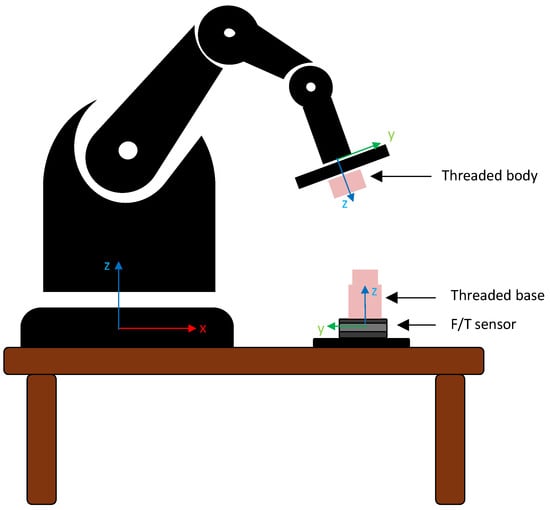 Typically, the threaded components could be of two types: internal or external threads, with varying thread parameters [15,16]. The current section details the experimental setup and protocol, the tools used and the analysis employed to discern the haptic artefacts during threaded insertion (refer to the frames defined in Figure 1).