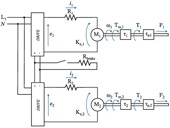 In the case of the PRR manipulators, each linear guide is actuated by an electric motor coupled to a belt–pulley transmission. The selected actuators correspond to those adopted in similar configurations reported in [34], ensuring a consistent reference for dynamic and energy analyses. The same motors are used for both PRR90 and PRR45 architectures, while the transmission ratios have been adjusted to satisfy the respective kinematic requirements.
